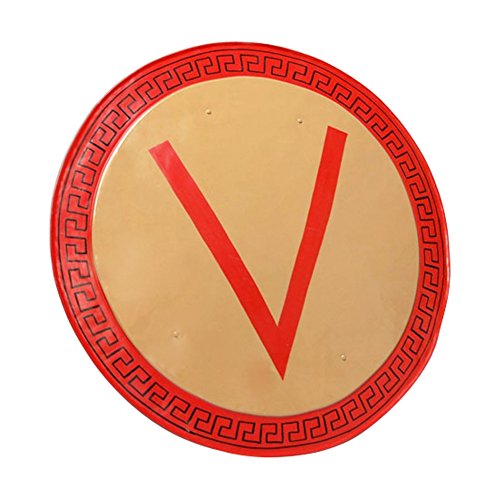 This unique full size Hoplite Shield is an Armor Venue exclusive. Featuring historically authentic hand-painted designs on the outside and the classic "V" shape hoplite insignia, this is one shield you'll want in your collection while this item is available. It is made out of 18 gauge steel, has arm handles on the back, and is a full 30" in diameter for an authentic size shield. This is perfect for collectors, reenactors, and also will accent the ultimate greek costume with our Hoplite Complete set. Important Shipping Note: Due to the large size of this shield, shipping costs will be higher than normal ground prices as it will come in a large box