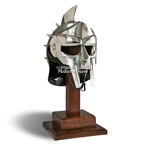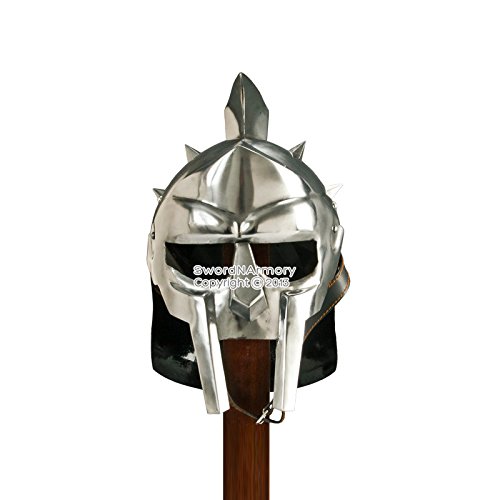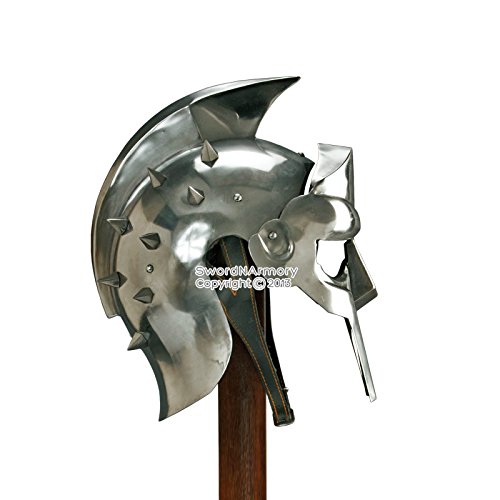 Circumference: 26.75", Material: 18 Gauge Steel Features steel spikes and face cover. Comes with adjustable faux leather liner and leather chin strap. It's wearable and functional. Note: Stand sold separately. Brand New All steel and iron parts can oxidize so oiling and regular cleaning should be done to prevent rusting.